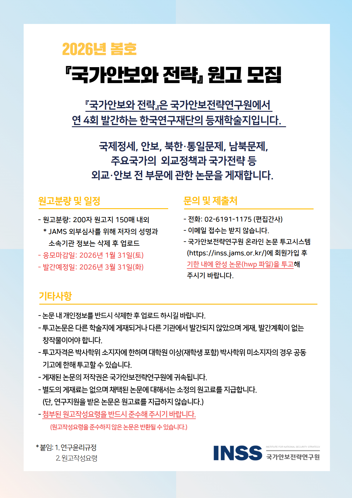 [원고모집]『국가안보와 전략』2026년 봄호